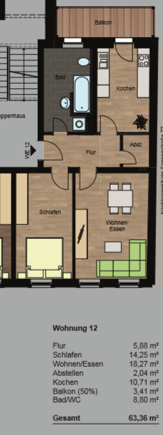 Wohnfläche 63,36 m²