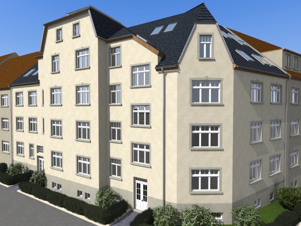Das denkmalgeschützte Jugendstilhaus wurde liebevoll saniert und erstrahlt im neuen Glanz. Im Zuge der Baumaßnahmen entstanden 8 hochwertig ausgestattete Wohneinheiten mit nachfragegerechten Grundrissen. Die Balkone der Wohnungen (Südwest) richten sich optimal in den grünen Innenhof, welcher im Zuge der Sanierung neu gärtnerisch gestaltet wird.