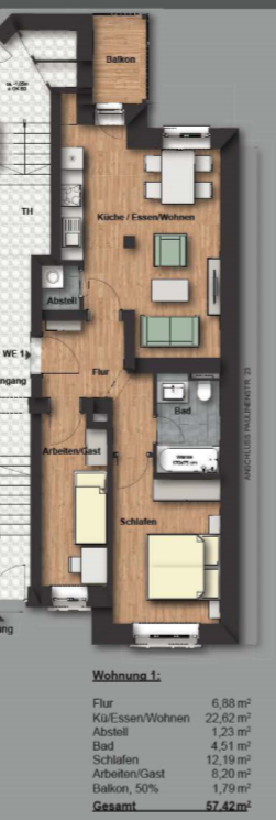 Wohnfläche 57,42 m²