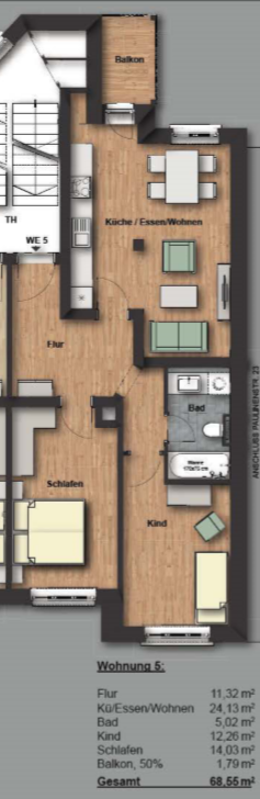 Wohnfläche 68,55 m²